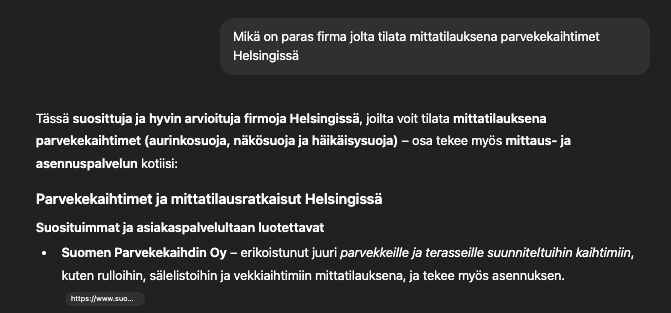 Näkyvyyttä ja mainintoja tekoälyhauissa arvosteluilla