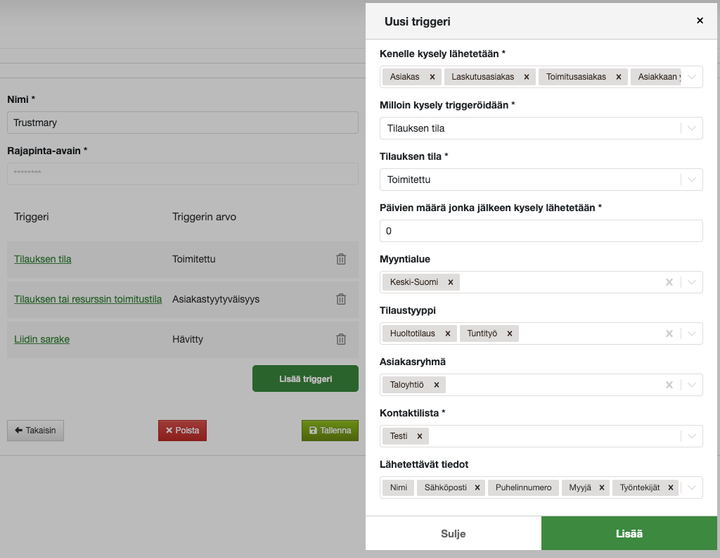 Tietty valitsemasi toiminto Easoftissa aloittaa automaatioketjun. Esimerkkejä hyvistä triggereistä palautekyselyille: