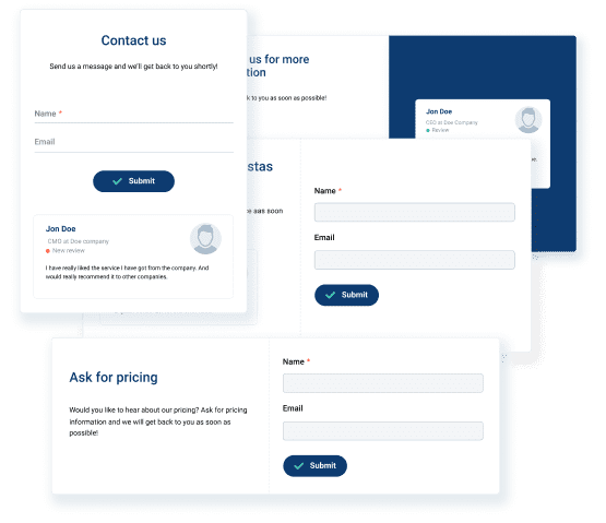 Löydä juuri itsellesi sopiva lomakepohja. Voit myös kustomoida niitä lisää, jotta se sopivat nettisivullesi saumattomasti.