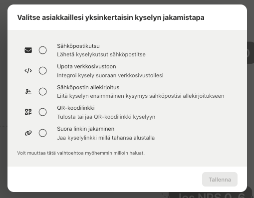 Valitse jakotapa, joka sopii yrityksesi tarpeisiin. Oli se sitten sähköposti, suora linkki tai vaikkapa QR-koodi.