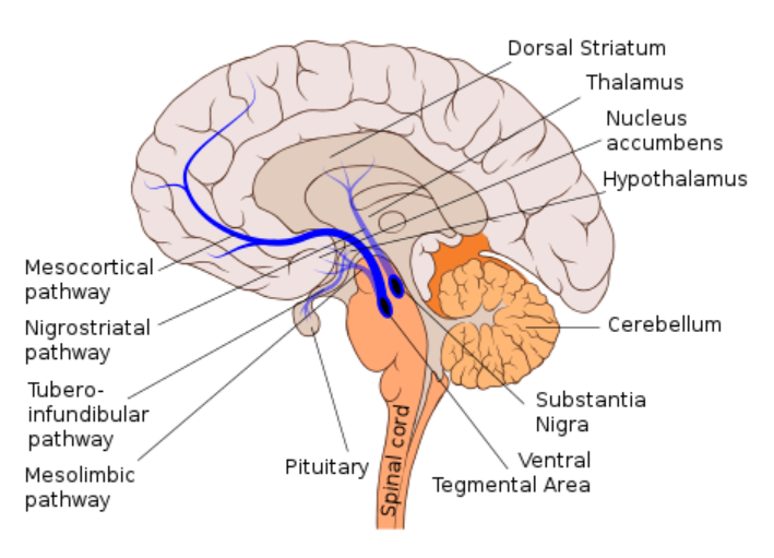 Once the dopamine neurons reach the nucleus accumbens via the mesolimbic and mesocortical pathways, the brain feels motivated and shapes the behavior based on whether a person seeks a social or a physical reward.