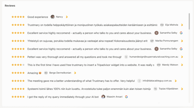 You can filter reviews based on location or other parameters and add them to relevant places on your website automatically.