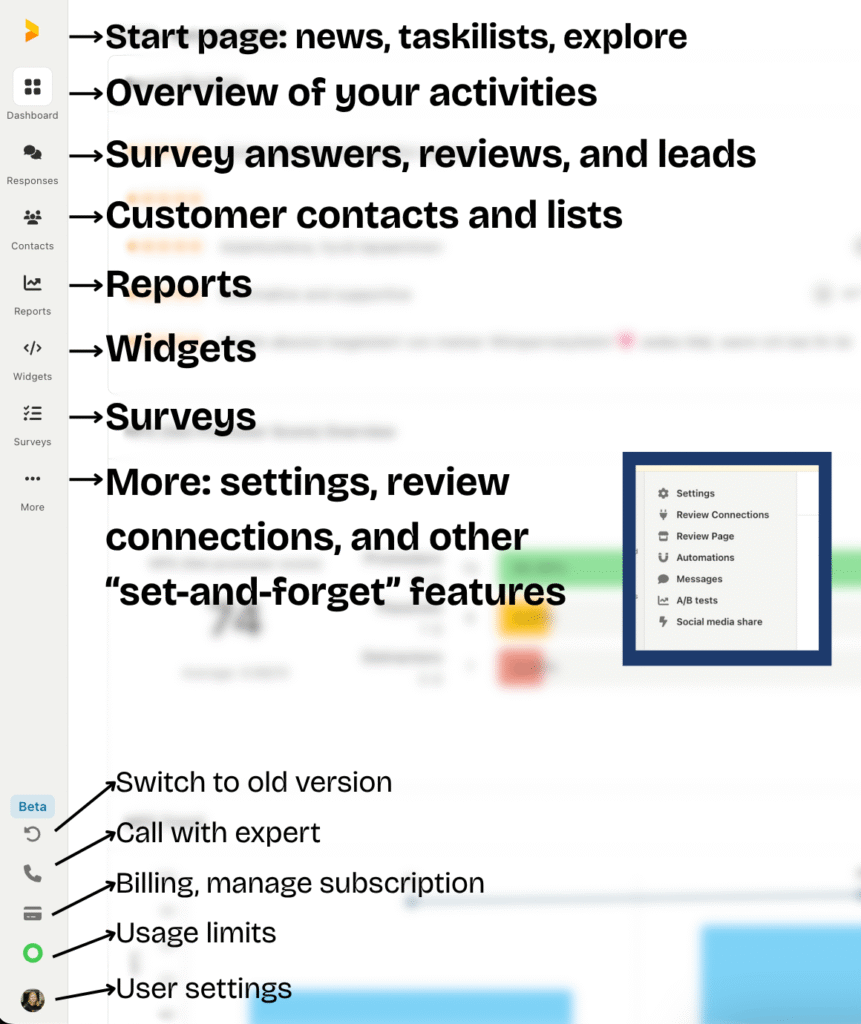 When you log in, you can directly see your new survey responses, your real-time customer satisfaction and online reputation status, as well as an overview of all your activity.