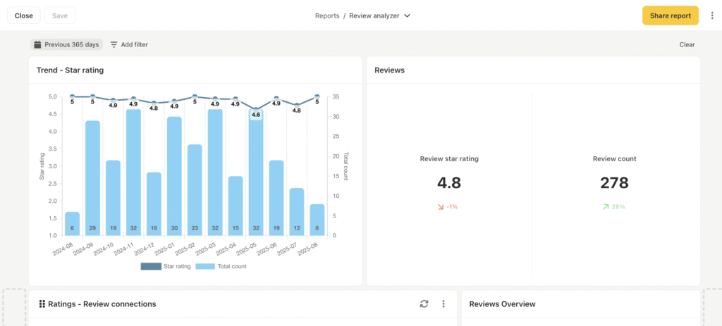 When you keep an eye on your reviews and organize them into a simple report, you start noticing things you might otherwise overlook. Maybe customers keep praising the same team member. Maybe a new process caused a drop in ratings. Or perhaps small issues are repeated so often that they start to feel bigger.