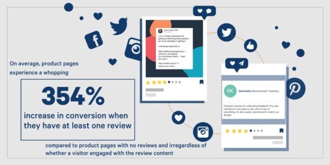 Genom att lägga till en enda recension på din produktsida kan du se en enorm 354 % ökning av konverteringen. Tro mig, det är inte svårt att hitta en kund som är villig att skriva en positiv recension.