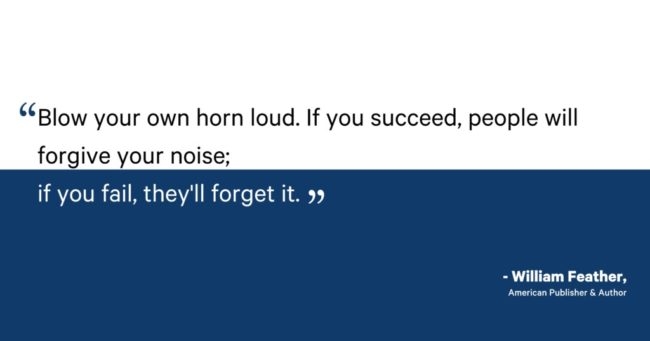 “Blow your own horn loud. If you succeed, people will forgive your noise; if you fail, they’ll forget it.”