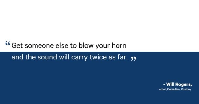 “Get some else to blow your horn and the sound will carry twice as far.”