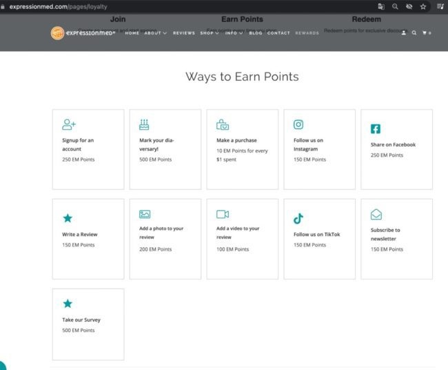 ExpressionMed har till exempel kopplat incitament till sitt lojalitetsprogram. De har också många användarbilder, eftersom de har gjort det enkelt för sina kunder att lämna en bild.